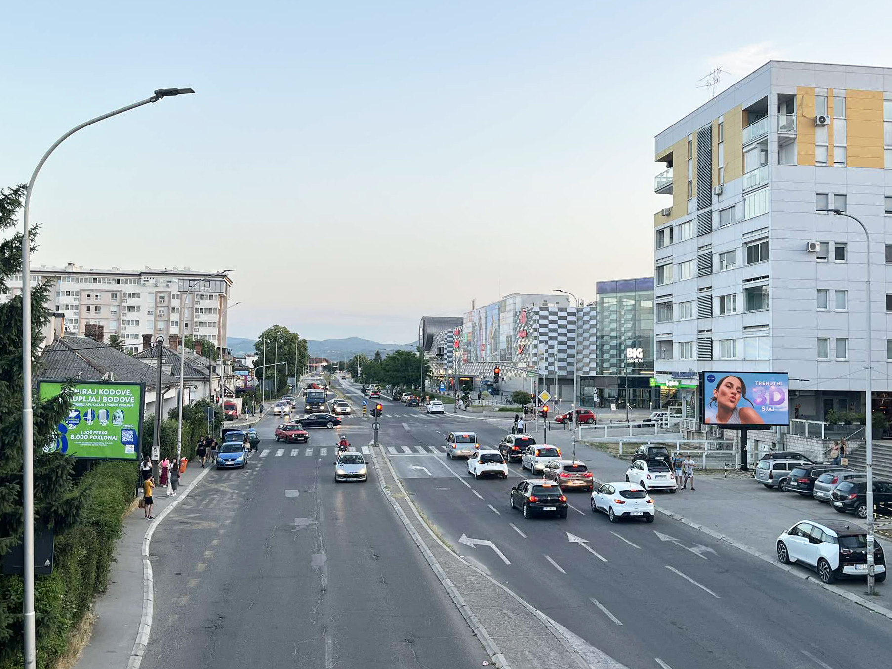 Bilbord se nalazi na raskrsnici ispred Forma Ideale.